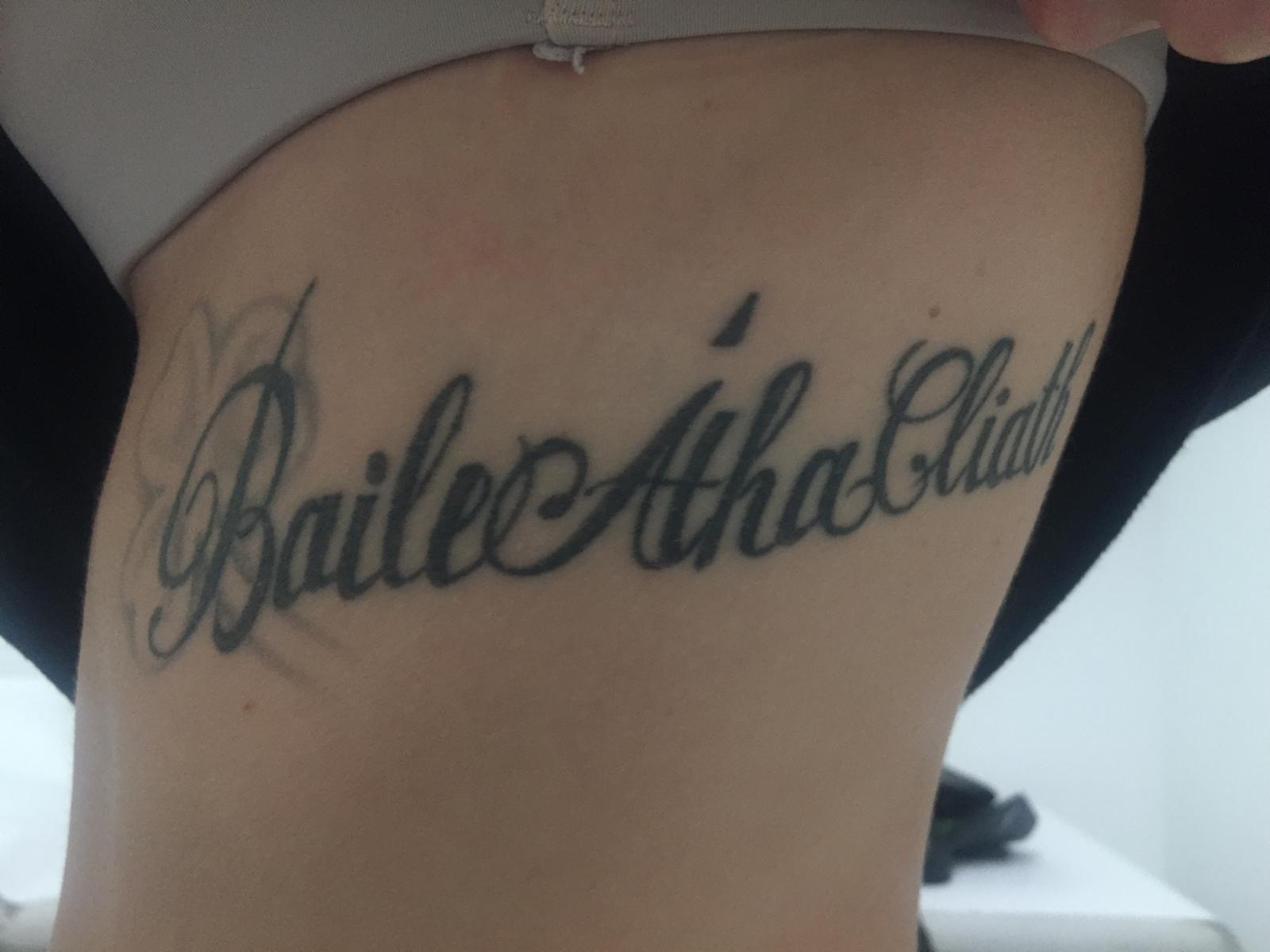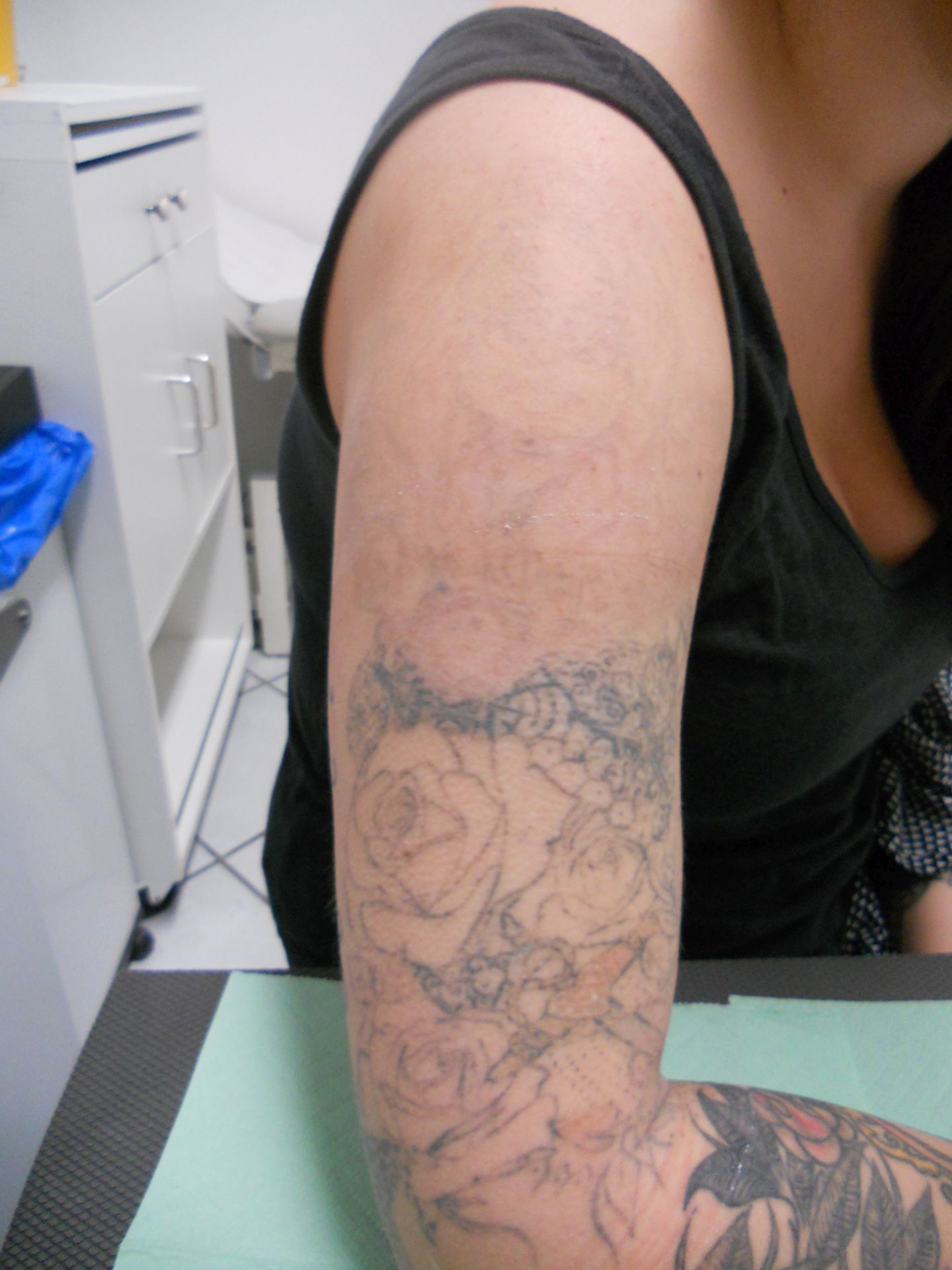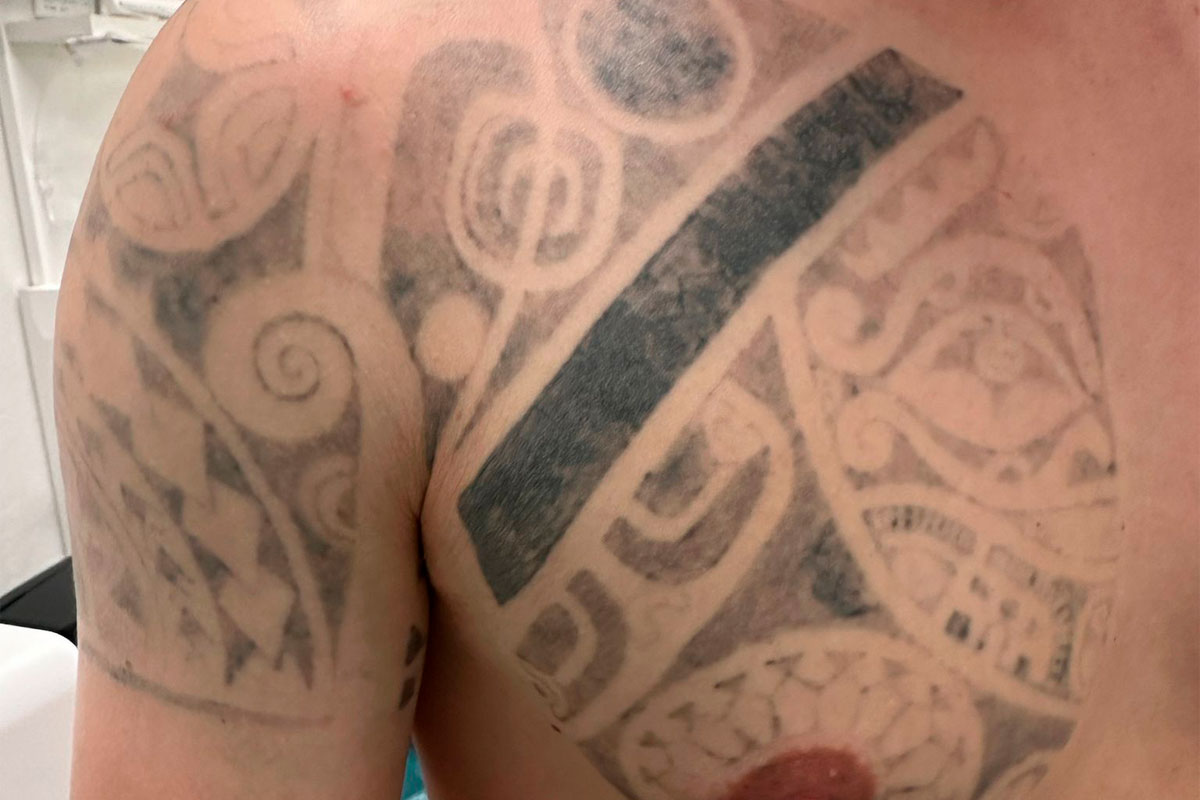 Eine Teilentfernung des Tattoos (nur die oberen Kugeln entfernt)